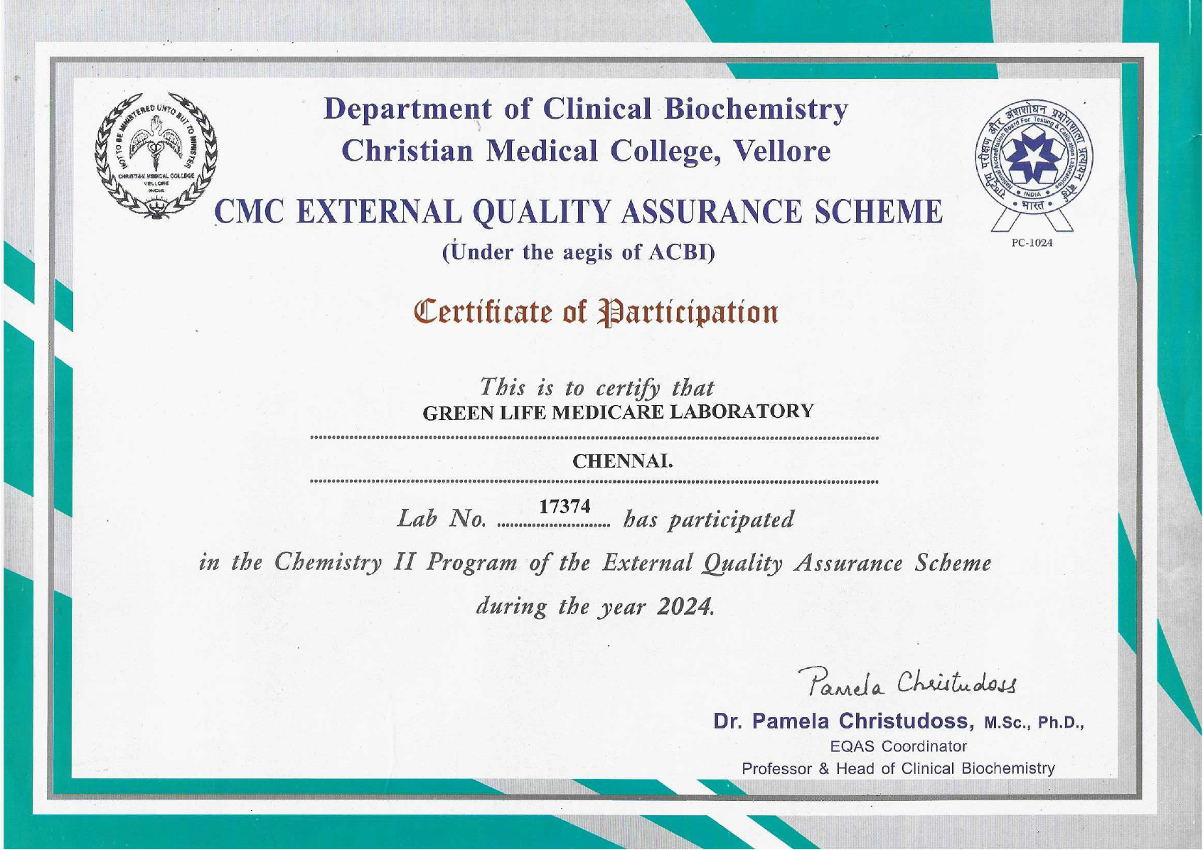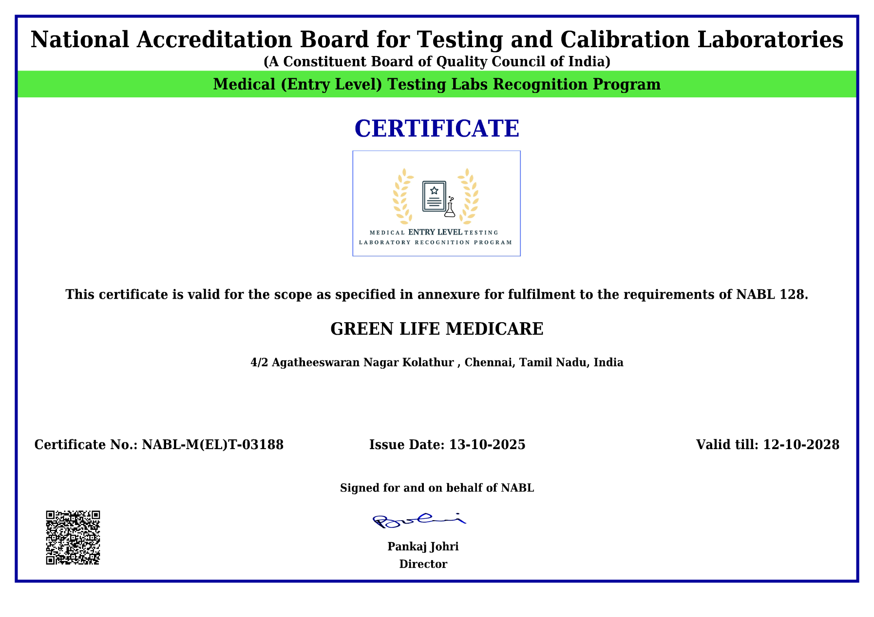 Established in 2015, our laboratory is accredited by the National Accreditation Board for Testing and Calibration Laboratories (NABL), CMC Vellore Certified for External QC and certified ISO.9001:2015.